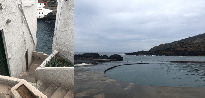 Nous avons fini la journée à Tacoronte, une piscine plus ou moins naturelle au bord de l’eau. Le temps n’était pas extraordinaire et la mer était déchaînée, ce qui nous a valu quelques prises de risques en voulant filmer les vagues qui s’écrasaient contre les rochers.