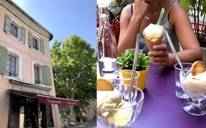 Hello ! Aujourd’hui je vous partage une de mes meilleures adresses ! Situé à Céreste, entre Apt et Manosque, Scaramouche est un artisan glacier renommé dans la région.